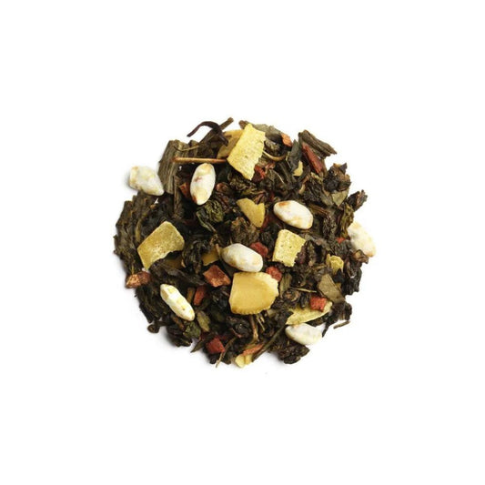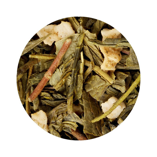 Thé blanc, thé vert, pomme cuite, fruits rouges