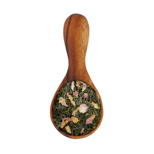 Thé vert, thé blanc, pétales de rose