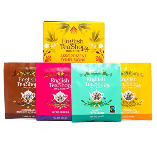 Fournisseur :English Tea ShopAssortiment d’infusions BioInfusions aux fruits rouges, aux agrumes, à la menthe et un rooibos cacao vanille Prix habituel 4,95€Prix promotionnel 4,95€ Prix habituelÉpuisé