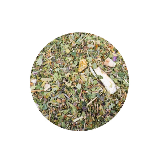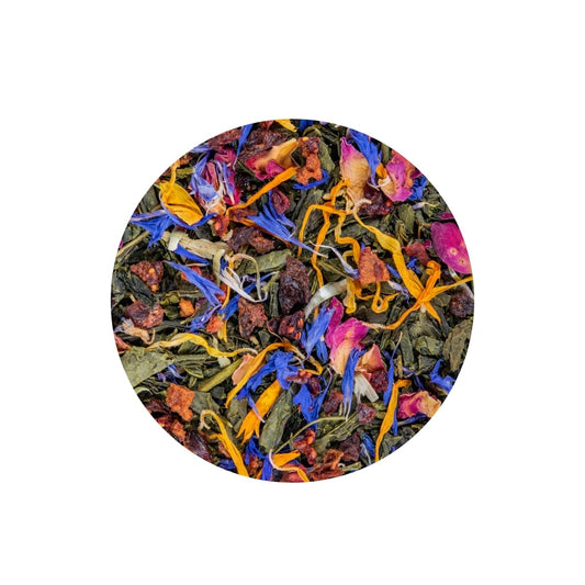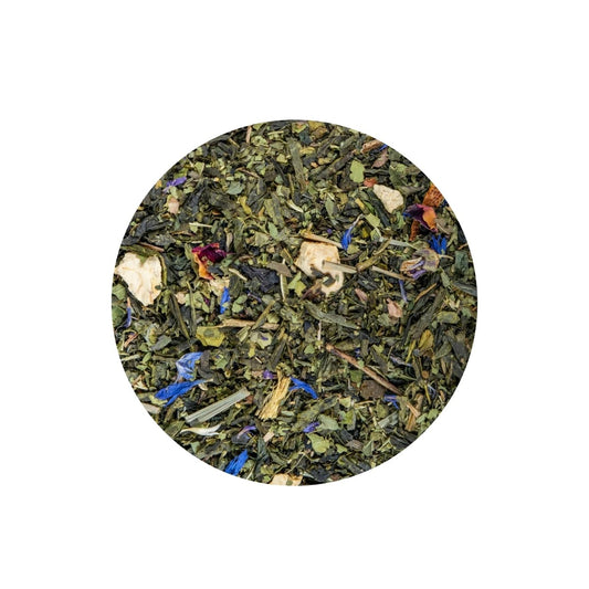 Rooibos, citron, noix de coco, pomme et feuilles de mûre