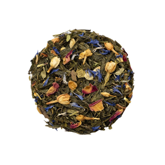 Oolong et thé vert, mangue, baie de goji, figue, rose et jasmin
