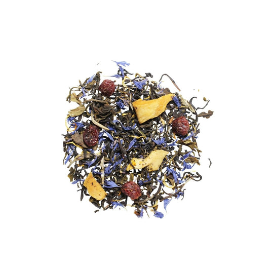 Thé noir et vert saveur mandarine, mangue, fruit de la passion