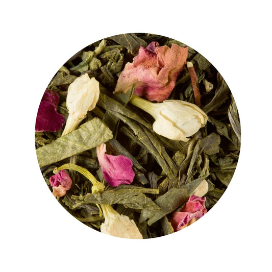 Thé vert, litchi, pamplemousse, pêche, rose, jasmin