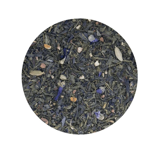 Thé noir, cannelle, gingembre, morceaux de citrouille