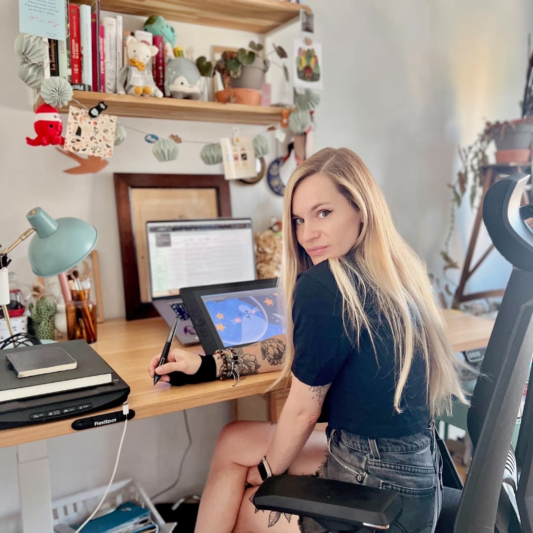 Illustratrice indépendante, Marion développe un univers onirique et délicat, entre illustration jeunesse et créations pour adultes. Elle collabore avec des marques et maisons d’édition aux univers variés.