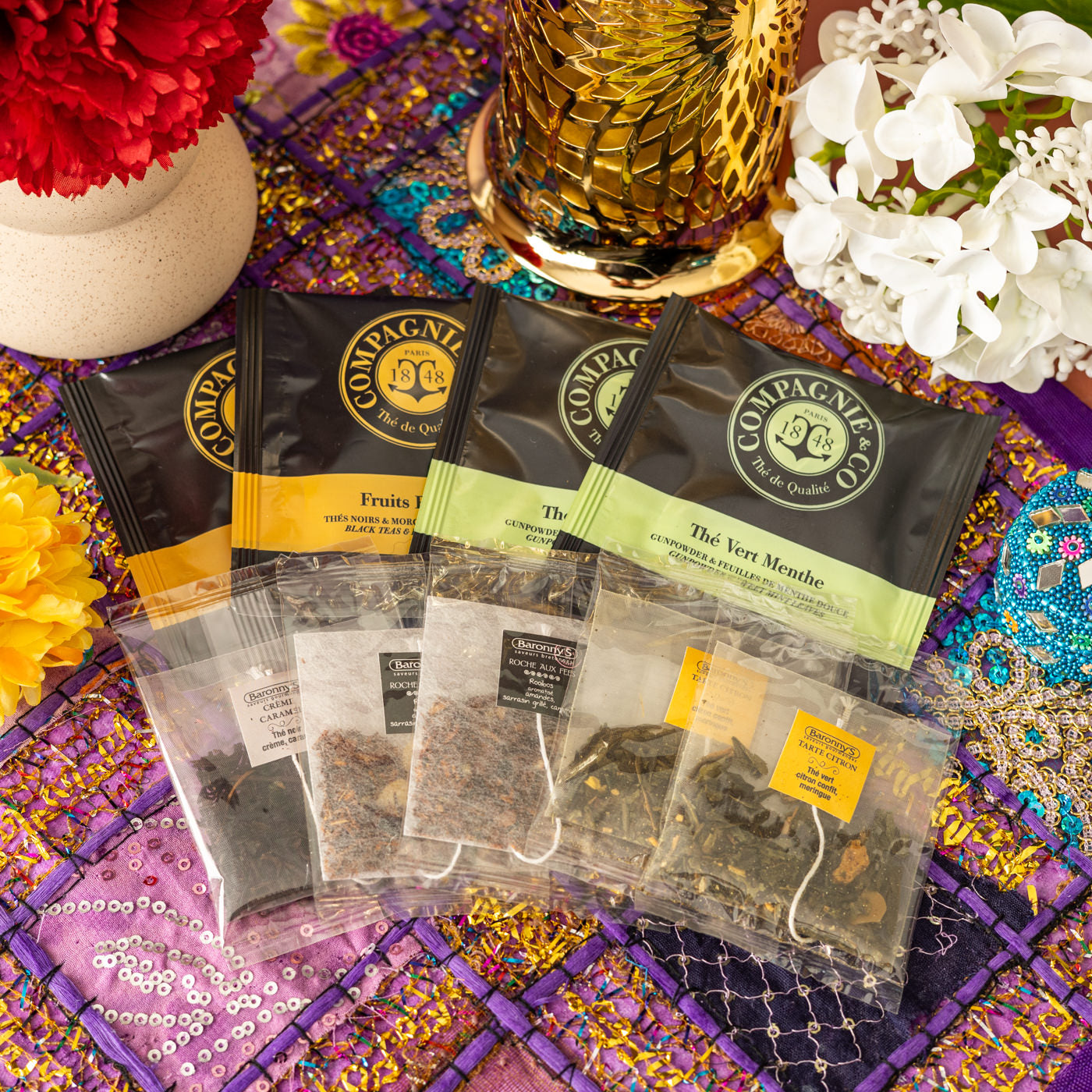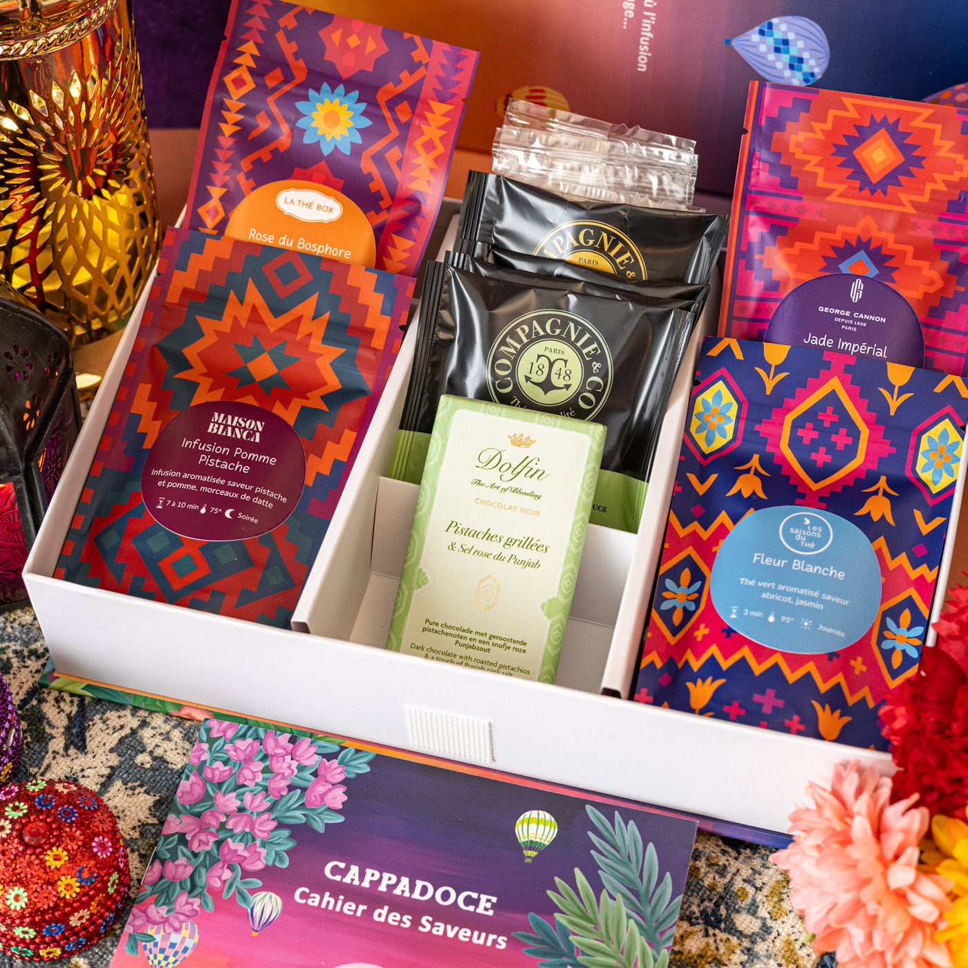 Dans cette box, chaque thé est une escale : des parfums épicés et fleuris, des notes gourmandes comme une douceur orientale, et des infusions qui évoquent la lumière dorée d'un matin paisible.