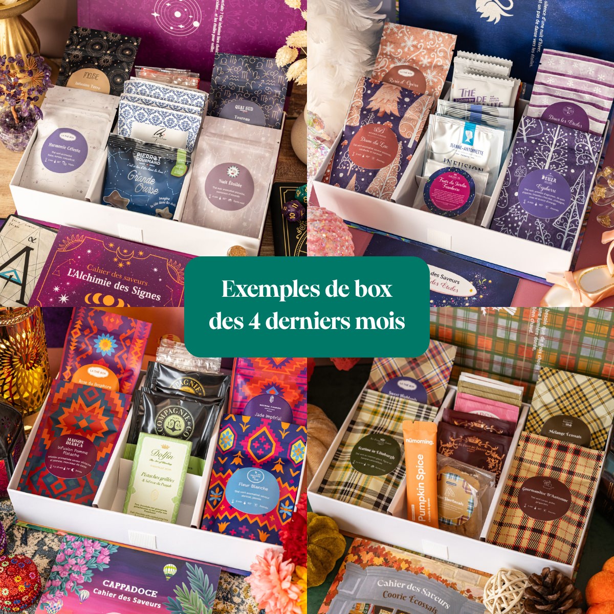 À l’intérieur du coffret cadeau, votre moitié découvrira une sélection de 4 thés en vrac, à savourer dès l’ouverture, ainsi qu’un bon cadeau "abonnement" pour recevoir 2 à 12 mois de thé chez elle. Chaque mois, elle recevra une nouvelle box de thés et infusions, autour d’un thème gourmand pour la faire voyager.