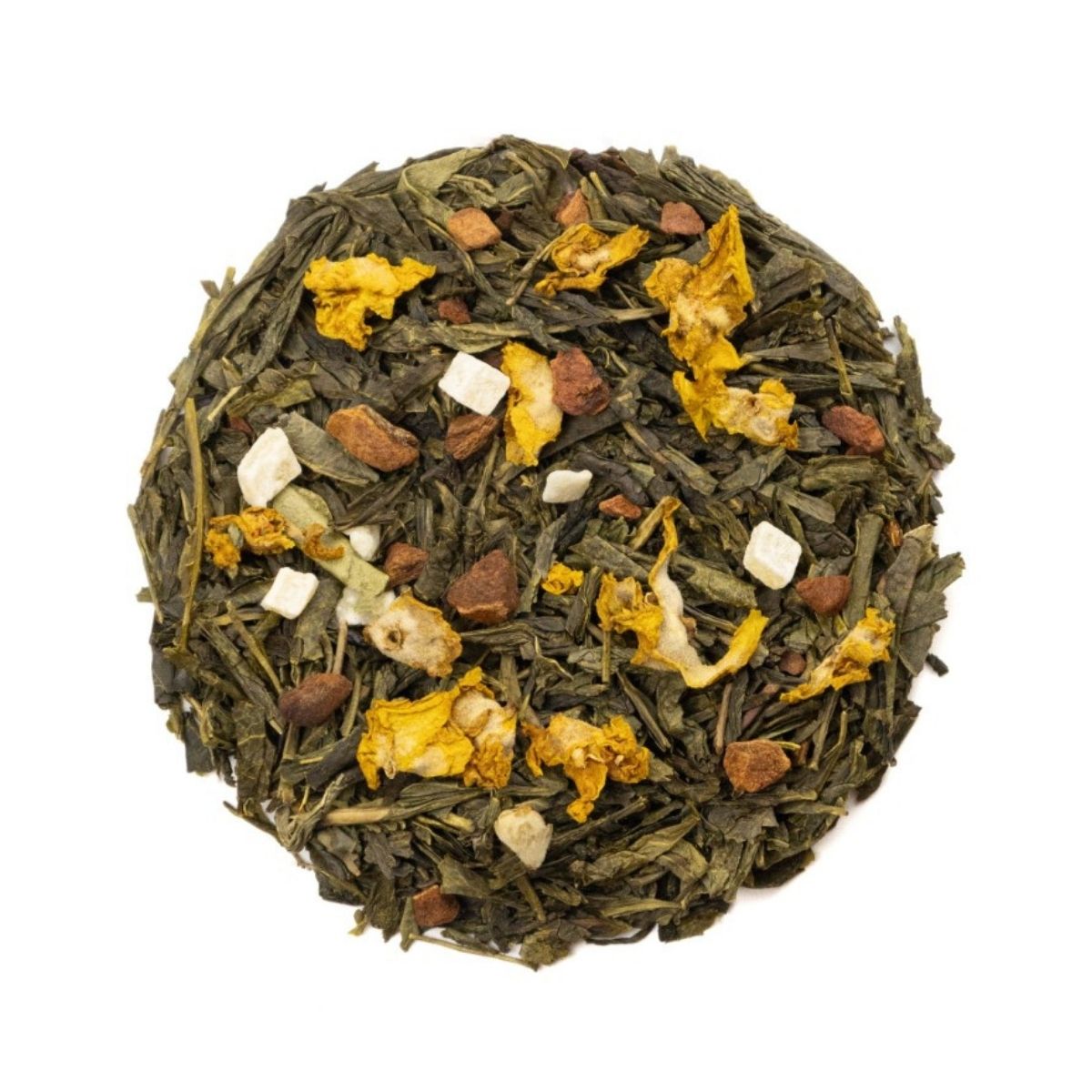 Thé vert, poire, mangue, mangoustan, fleur de molène.